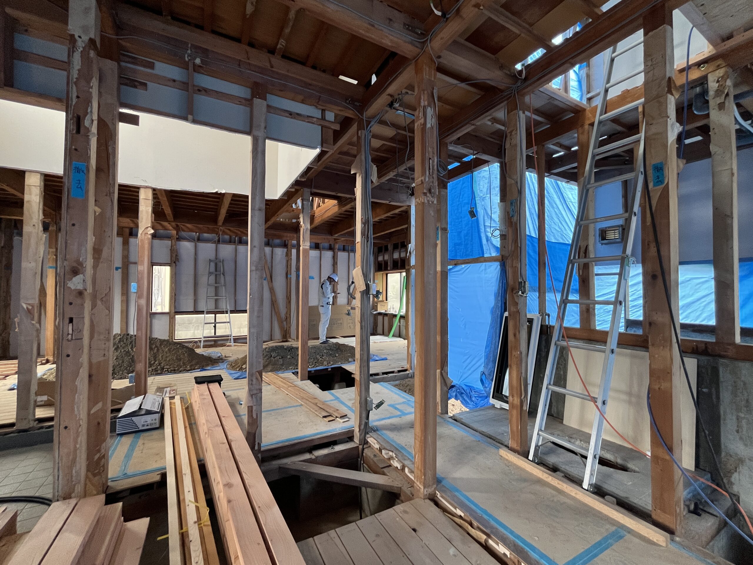 現在は、建物の重要な構造に関わる工事が大工さんの手により進められています。リノベーションプランの作成をした一級建築士の竹内が現場の監理のため日々現地で指揮を取っているのでその様子もリポートさせていただきます!