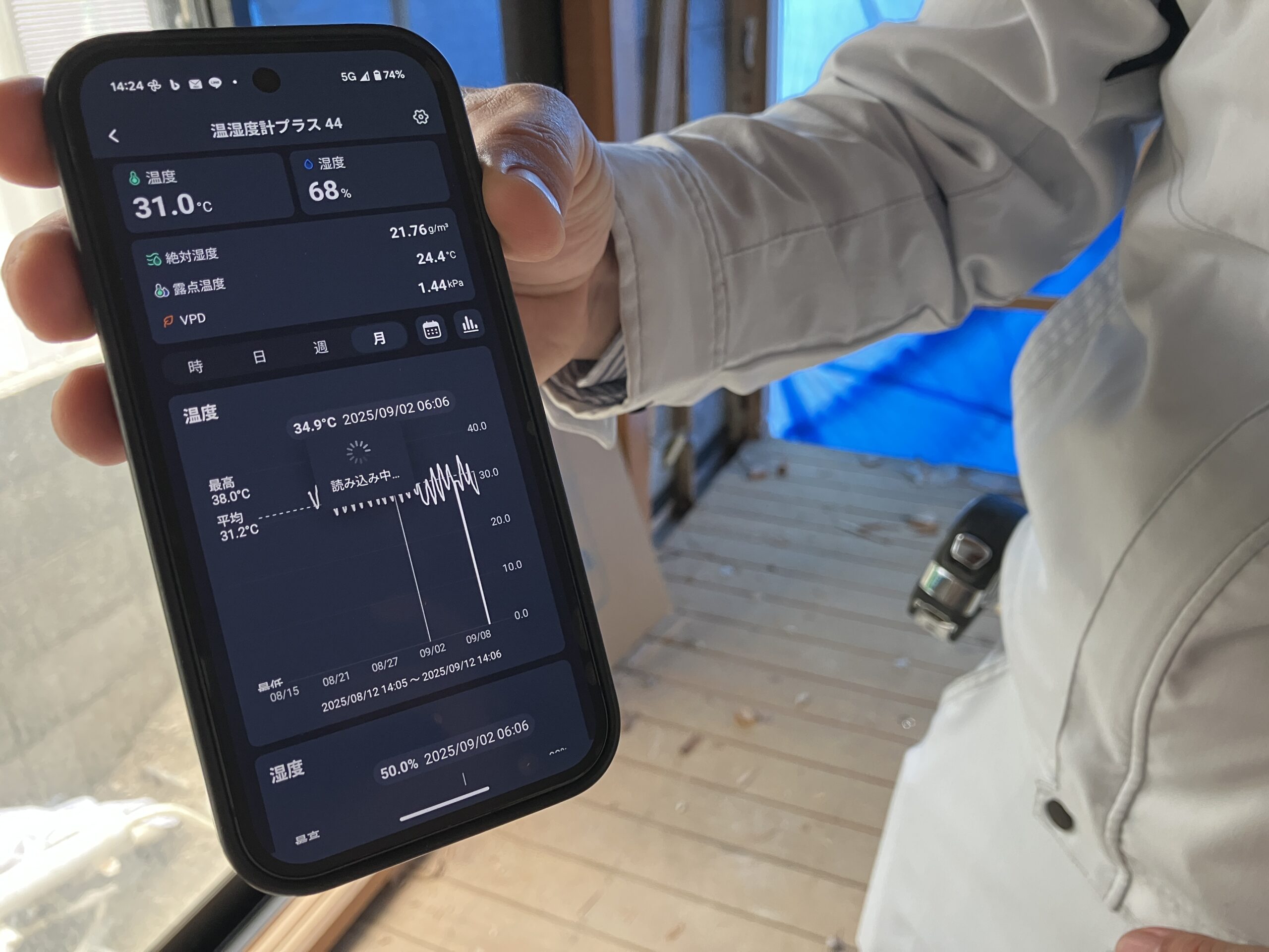 これは、工事が完了した後に再度計測を行い、断熱性能がどれだけ向上したかを、お客様の体感だけでなく「数値」としてもご確認いただくためのものです。特に、住んだことのない中古住宅のリノベーションでは、性能の変化が分かりにくいもの。だからこそ、目に見える形でも、安心と納得をお届けしたいと考えています。