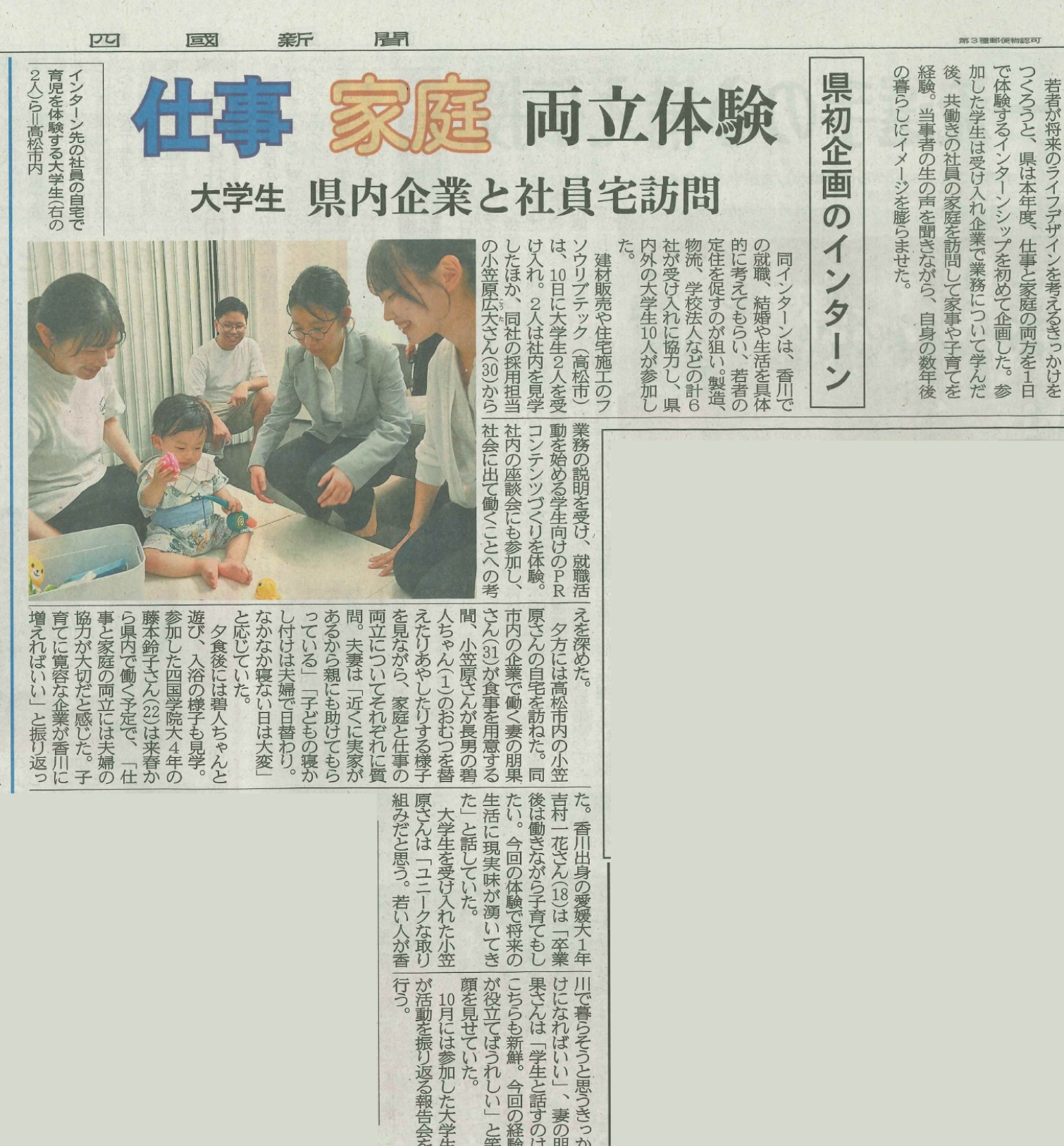 先日、私たちは香川県が初めて企画した「仕事と子育て両立体験事業」に、県内6社のうちの1社として参加いたしました。