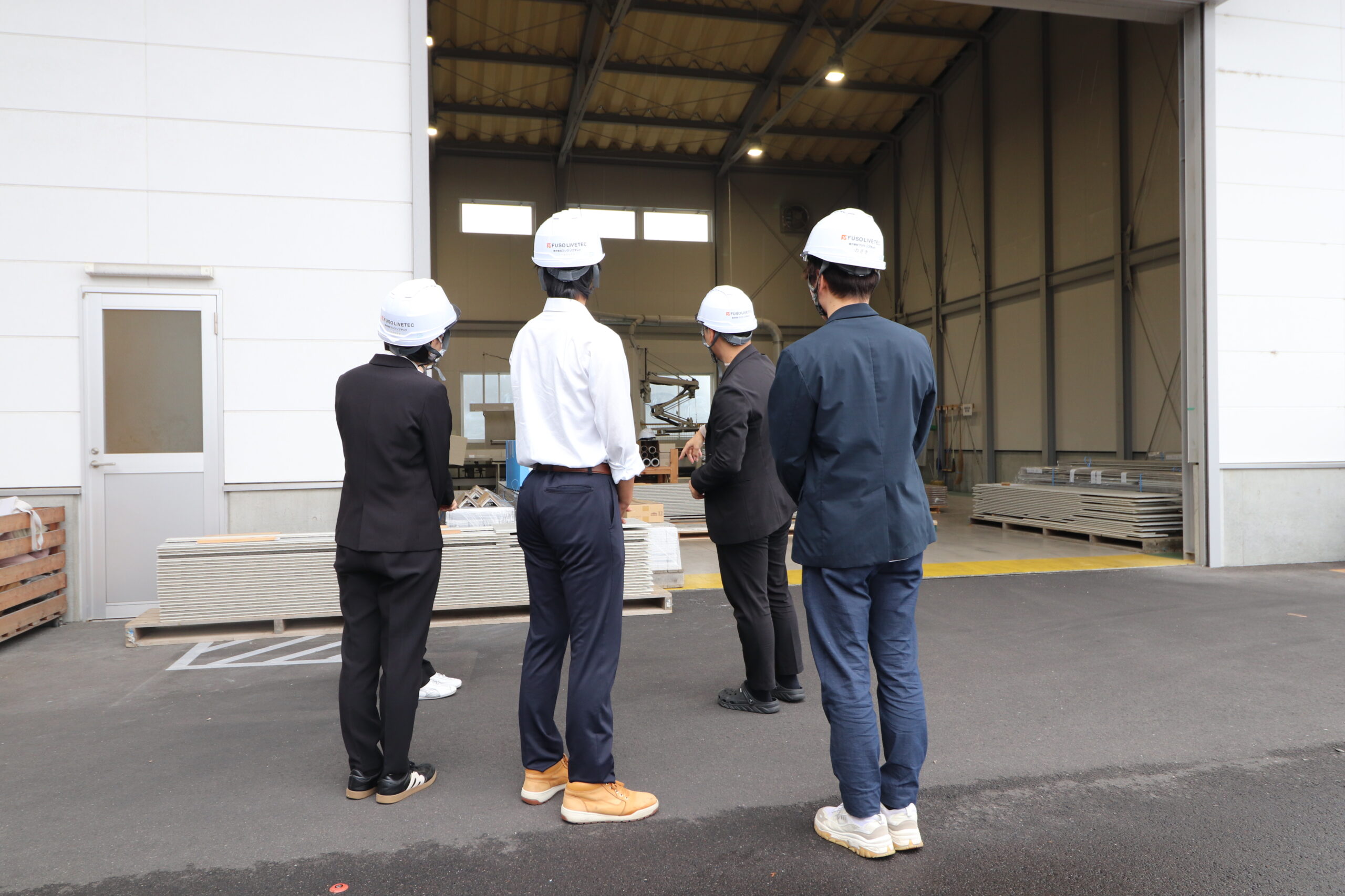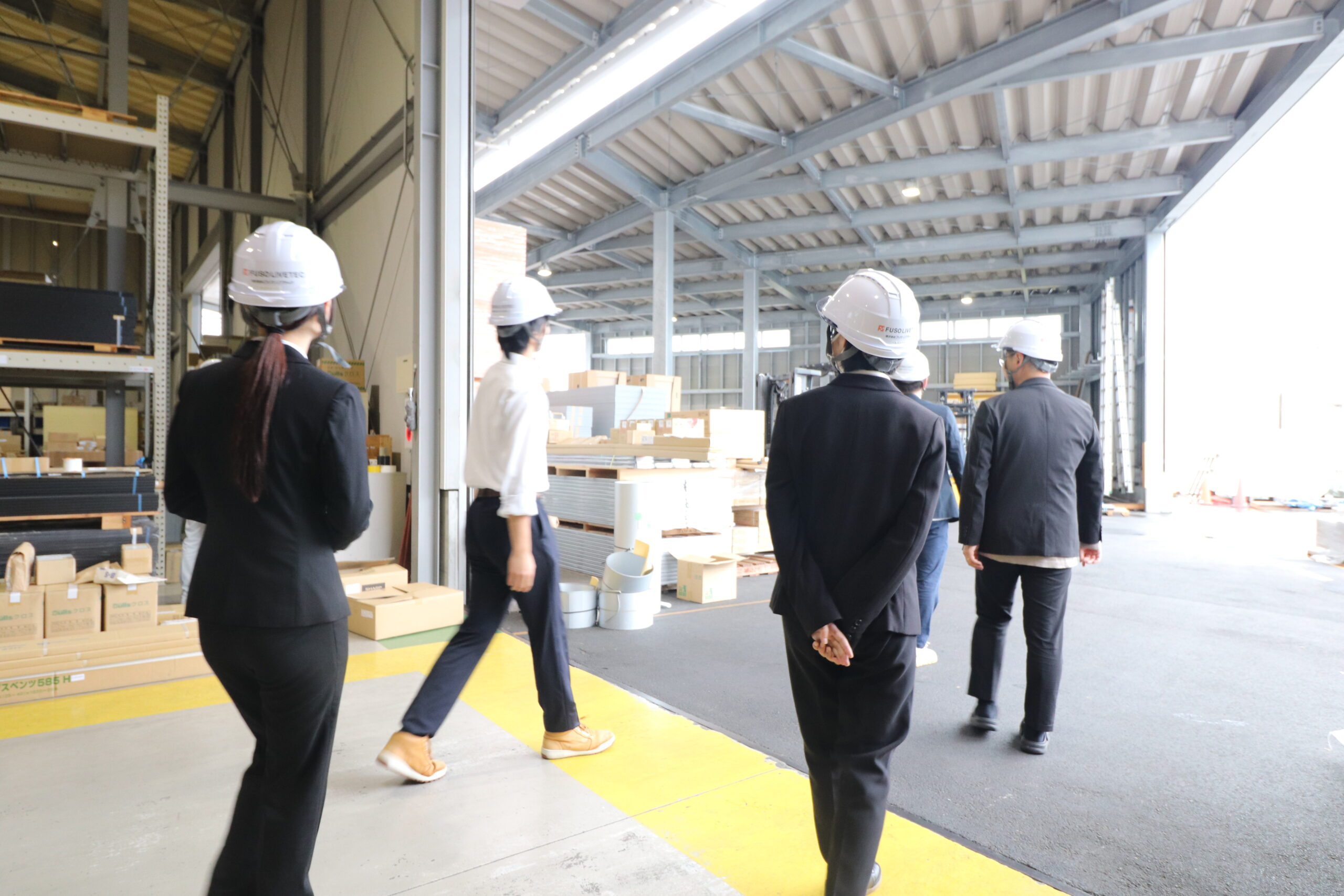 オフィスに加え、倉庫やサイディングプレカット工場も見学し、稼働するプレカットの機械を目の当たりにした皆さんは、興味津々な様子でした。