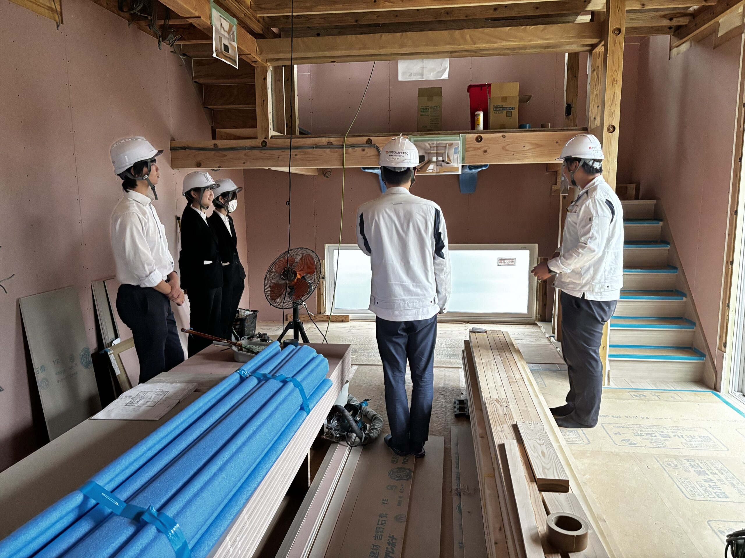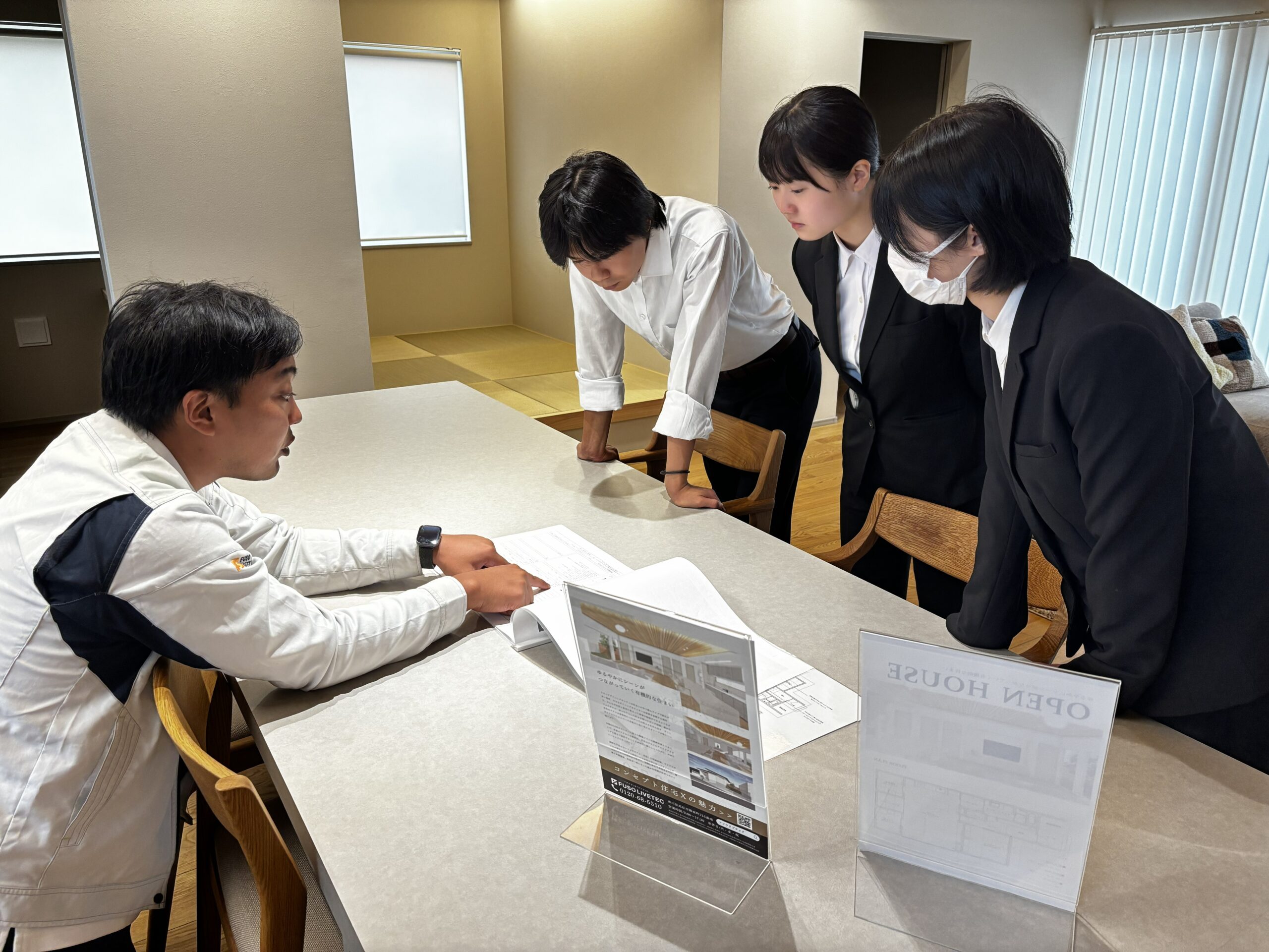 次に、私たちが実際に取り扱っている住宅建材をより深く知ってもらうため、弊社のモデルハウスへ移動しました。