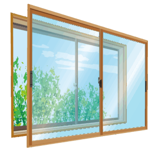 古い窓を断熱性の高い複層ガラスの窓に交換したり、内窓を設置したりする工事。外窓や玄関ドアの交換も含む。