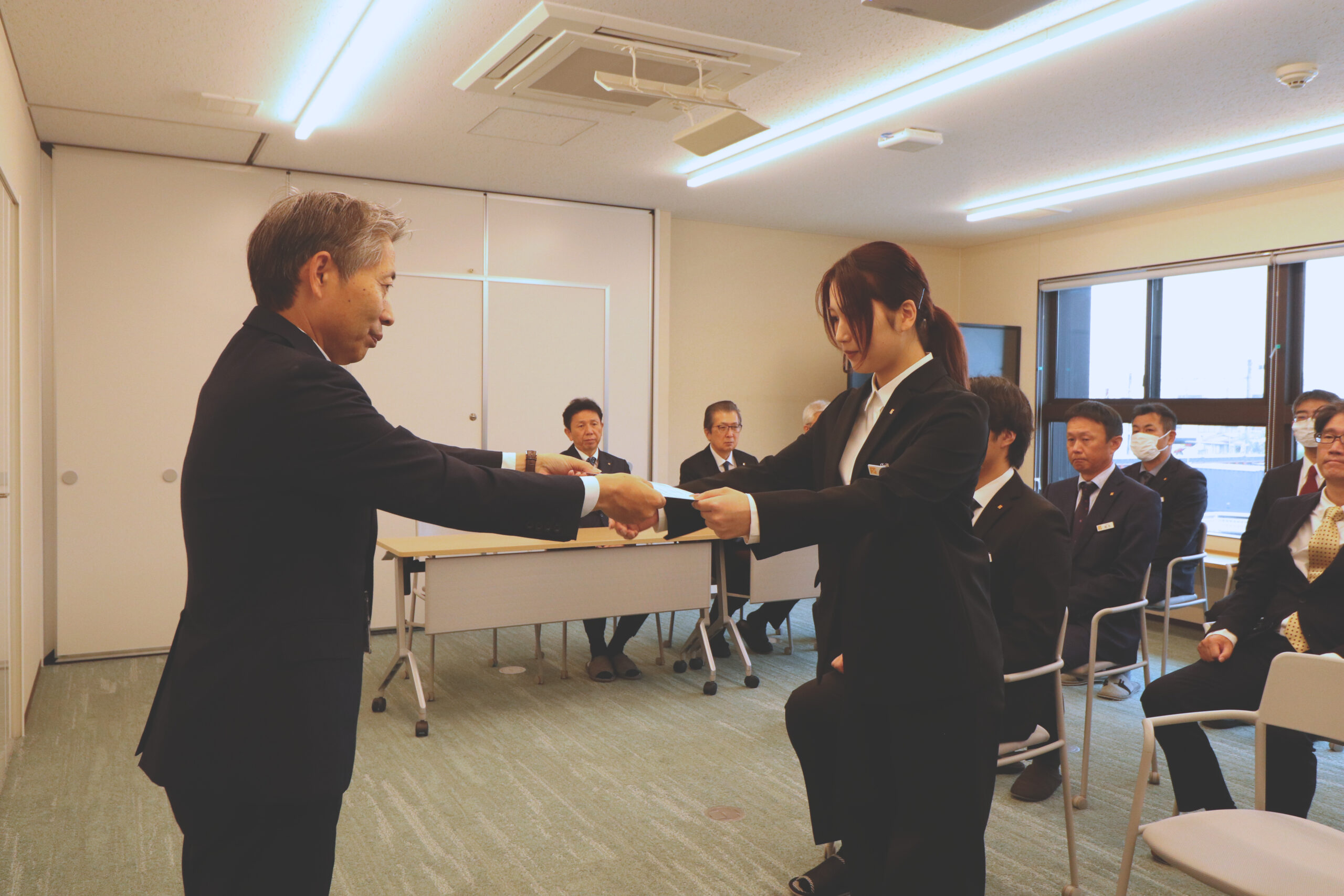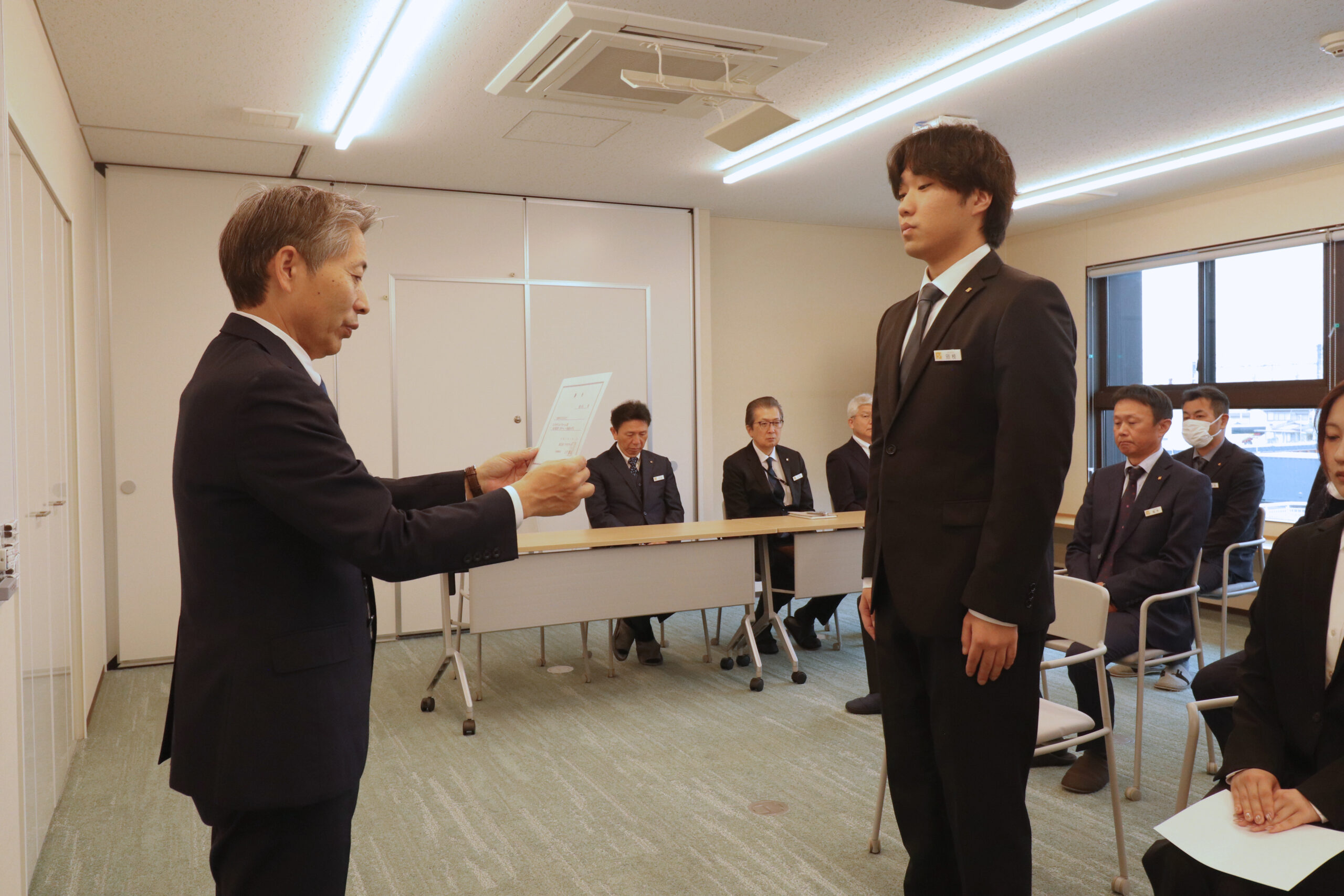 式では、役員ならびに各部の部課長から歓迎と激励のメッセージが送られ、新入社員にとって社会人としての第一歩を実感する時間となりました。
