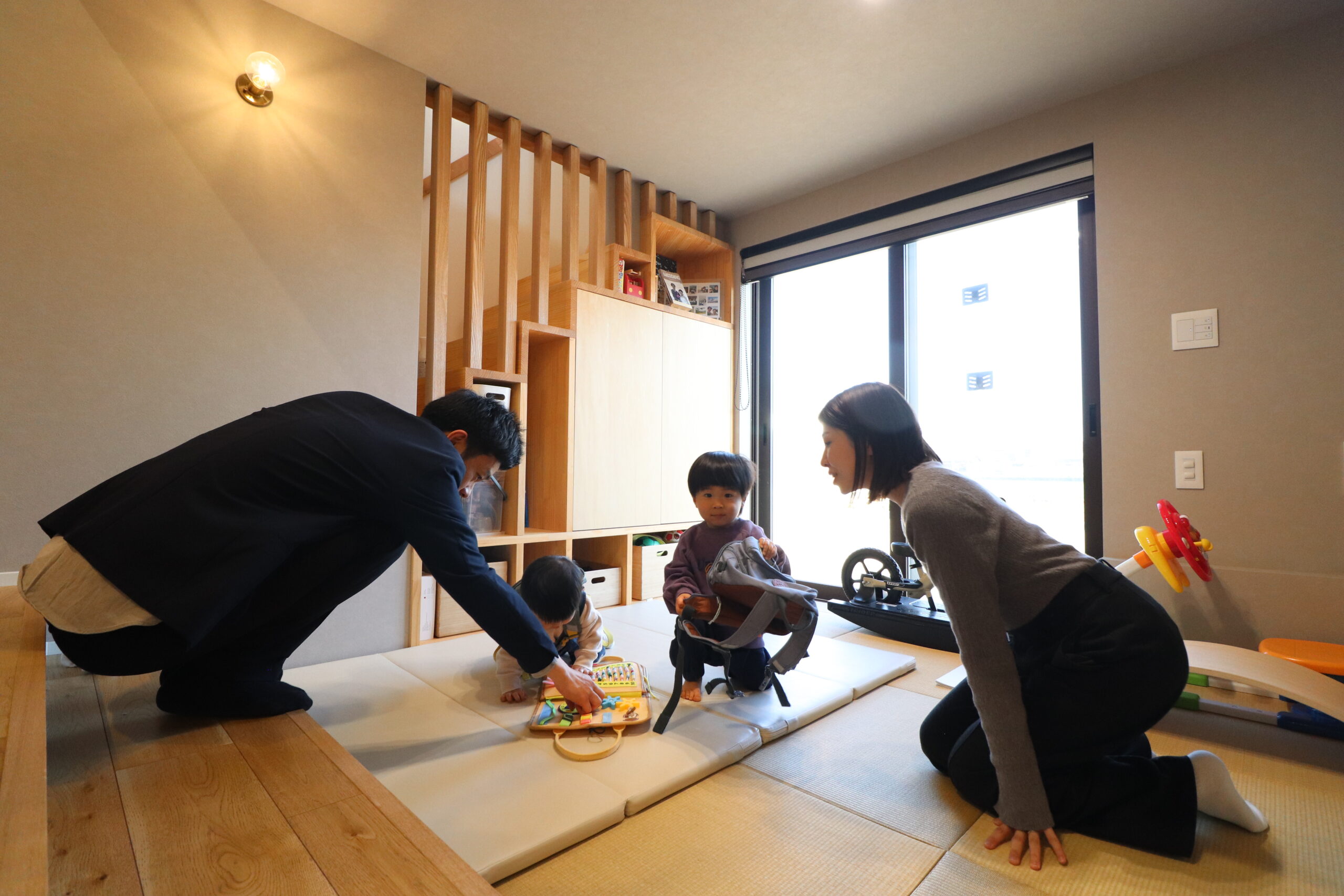 ご主人: 収納ですね。造作でつくってもらった収納におもちゃもどんどん入れられるので、部屋がすっきりしていて助かっています。
